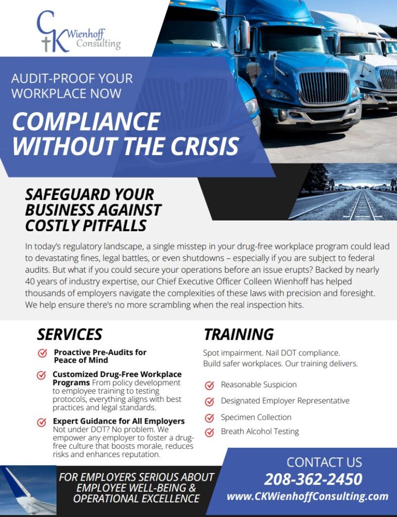Discover how CK Wienhoff Consulting helps you navigate drug-free workplace regulations and avoid costly penalties.